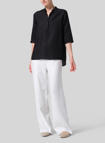 Linen Simple Top with Small Shirt Collar