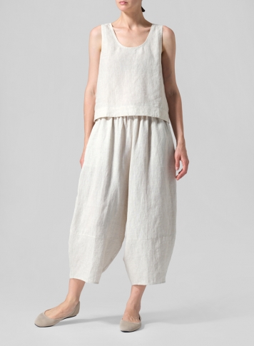 Linen Pleated Cuff Crop Pants