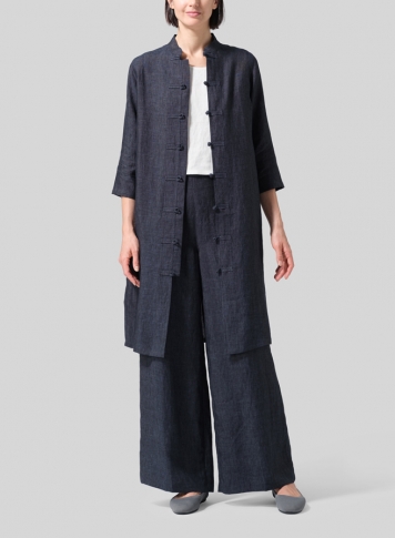 Linen Handmade Chinese Knot Buttons Long Tunic